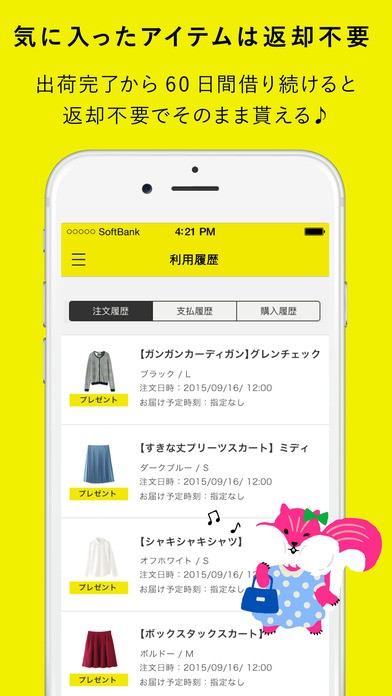 また「メチャカリ」は、出荷から60日間借り続けたアイテムをユーザーにプレゼントしています。デートのような特別な日以外にも頻繁に着る服があるなら、そのまま借り続けるのも1つの選択となりますね。