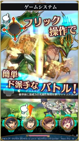 友達と協力して挑むリアルタイムバトルを、スタミナなしで堪能することができる王道ファンタジーRPG『ヴァリアントナイツ〜光と闇の覚醒〜』。光と闇、そして火・水・木の5大精霊によって創造された世界で、悪は討たれ「暗黒時代」は伝承となっていました。ところが長い平和が続く世界に、突如異変が襲います。闇を討つべく、光の国「ラスタリア」の騎士となって旅に出ましょう。バトルはリアルタイムで進行していきます。キャラクターがオートで攻撃を繰り出すので、フリック操作で様々なスキルを発動させ、モンスターを倒していってください。ゲージが満タンになると、奥義を発動させることができ、4人のキャラクターが連続して奥義を使用することによって、「アルテマブレイク」と呼ばれる究極の奥義を発動させることが可能です。