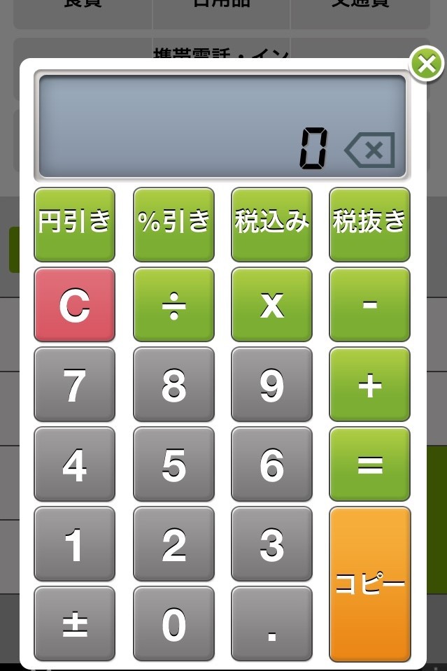 家計簿をつけるだけでなく、お買い物する際に便利な電卓機能もアプリで利用できます。電卓機能には、円引き・%引き・税込み・税抜きなど、用途に合わせた計算を行えます。さらに電卓機能を活用して出した数字は、電卓にある「コピー」機能を使うことで、そのまま家計簿を計上するときに利用できます。数字をいちいち覚えたり、わざわざメモしたりする必要がないので、お買い物をするときに便利です。消費税率や端数の処理方法については、ユーザー自身で設定できるので必要であれば調整しましょう。