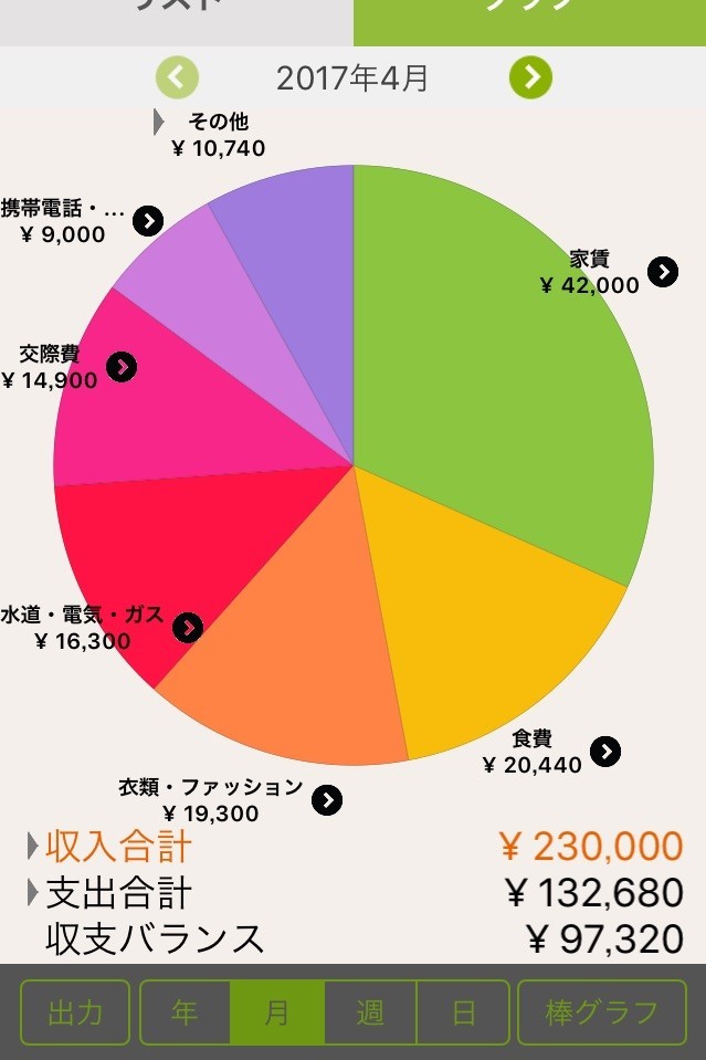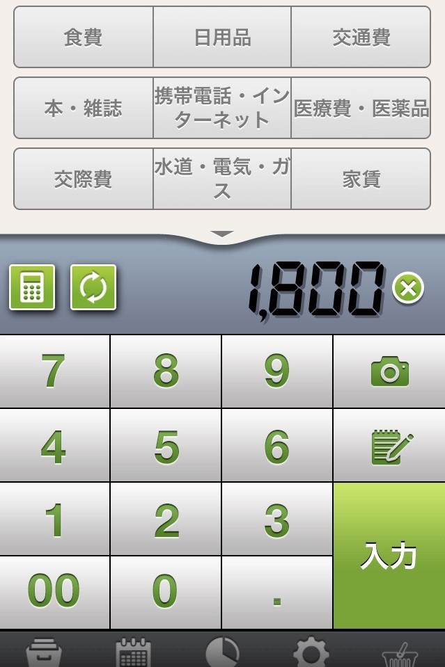 おカネレコで計上する日々の支出と収入を、アプリにあるスタンプを使ってオリジナリティあふれるものに仕上げられます。計上の方法は至ってシンプルです。支出した金額をアプリ内の電卓を使って登録し、後で何に出費したかを分かりやすくするためにカテゴリを選択します。必要であればメモに詳細を記入することができ、レシートを撮って一緒に登録することもできます。さらに日にち毎に好きなスタンプを押してより分かりやすい用にアレンジしておくと、オリジナルなカレンダーで家計簿を作成できるでしょう。出費の内訳を確認できる円グラフもカラフルで分かりやすい表示です。