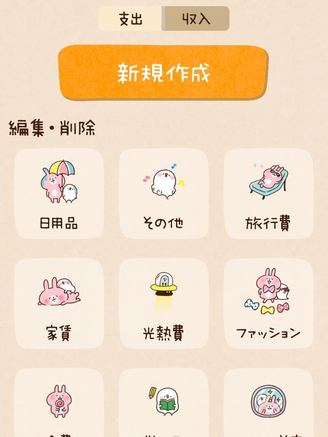 カナヘイ家計簿は家計簿をつける際に使用できるカテゴリのアイコンがかわいいです。カテゴリはすでに用意されているものを使用できますが、用途に合わせて自分でオリジナルのカテゴリを作ることもできます。その際に使用するアイコンは、アプリ内にある他のアイコンを参考にして自由に作成できます。