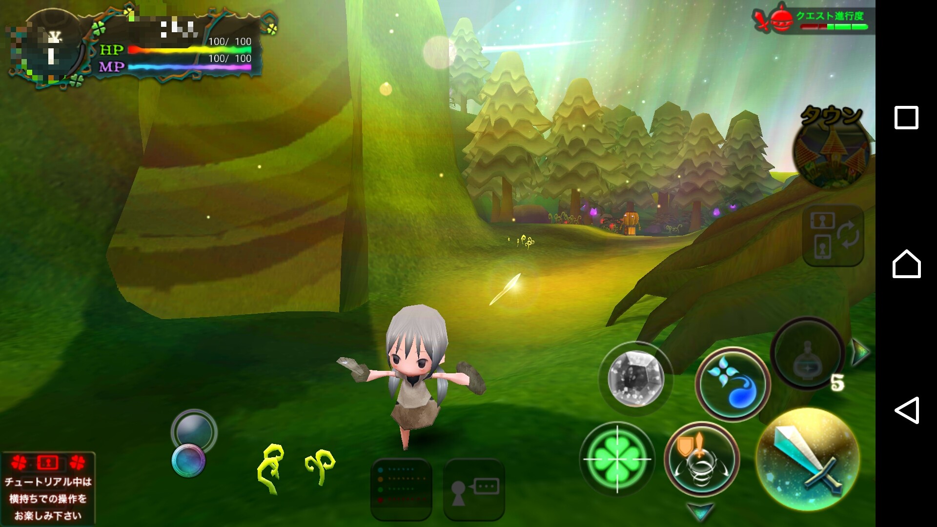 操作はとても簡単で、スマホ画面の左側をタップすると現れる仮想スティックを、行きたい方向に動かすだけです。