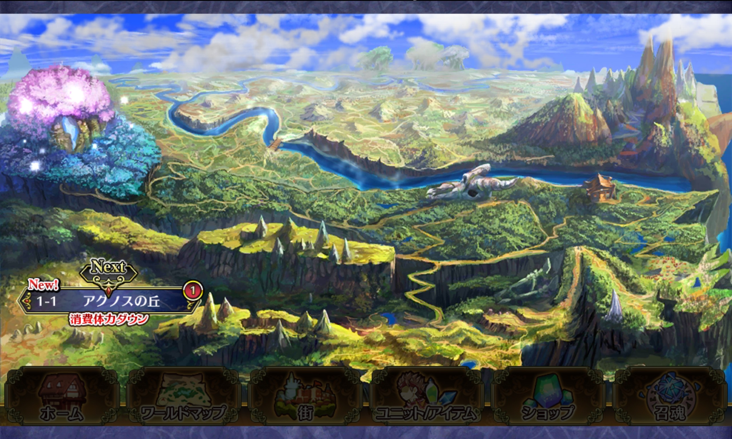 チュートリアルバトルが終わるとストーリーが一気に進みメインシナリオが幕を開ける。ストーリーの進行に応じてクエストが解放されるオーソドックスなシステムとなっている。
