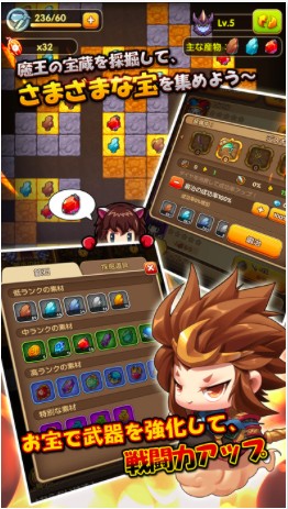 歴史上の有名武将や、童話に登場するキャラクターを集めて、邪悪な魔王から世界を救うべく戦う放置系RPG『ブレイブダイアリー』。孫悟空や織田信長、シンデレラなどなど、150種類以上ものキャラクターが用意されているアプリゲームです。バトルはすべてオートで進んでいくので、プレイヤーは画面をタップして結果が出るのを待ちましょう。アプリを閉じて放置している間にも、経験値やゴールドが自動で貯まっていくので、時間のない社会人の方はもちろん、RPGを初めてプレイする方でも、簡単にレベルアップしていくことが可能です。キャラクターのレベルが一定数に達すると、「転生」によってさらに能力をアップさせていくことができます。お気に入りのキャラクターをどんどん転生させて、最強の勇者に育て上げていってくださいね。