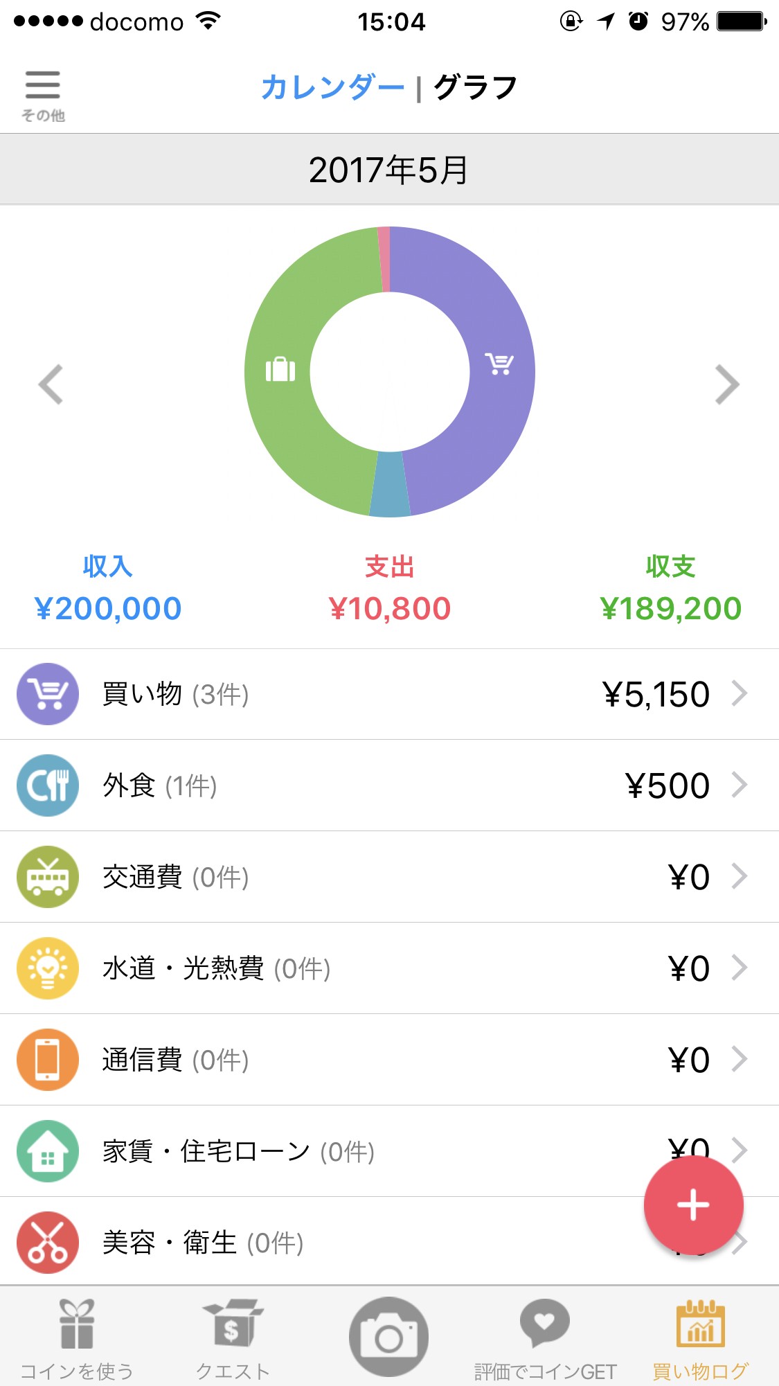 さらに、このアプリにはもう一つの使い方があります。それは「家計簿」です。