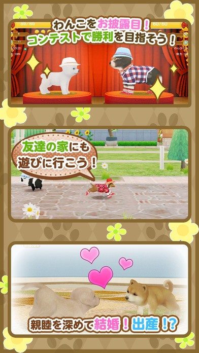 私のワンコが一番可愛い!と豪語する方は優勝を目指してみてはいかがでしょうか。そしてなんと他のワンコと結婚もできてしまうのです。オスメスの組み合わせであることは必須ですが、