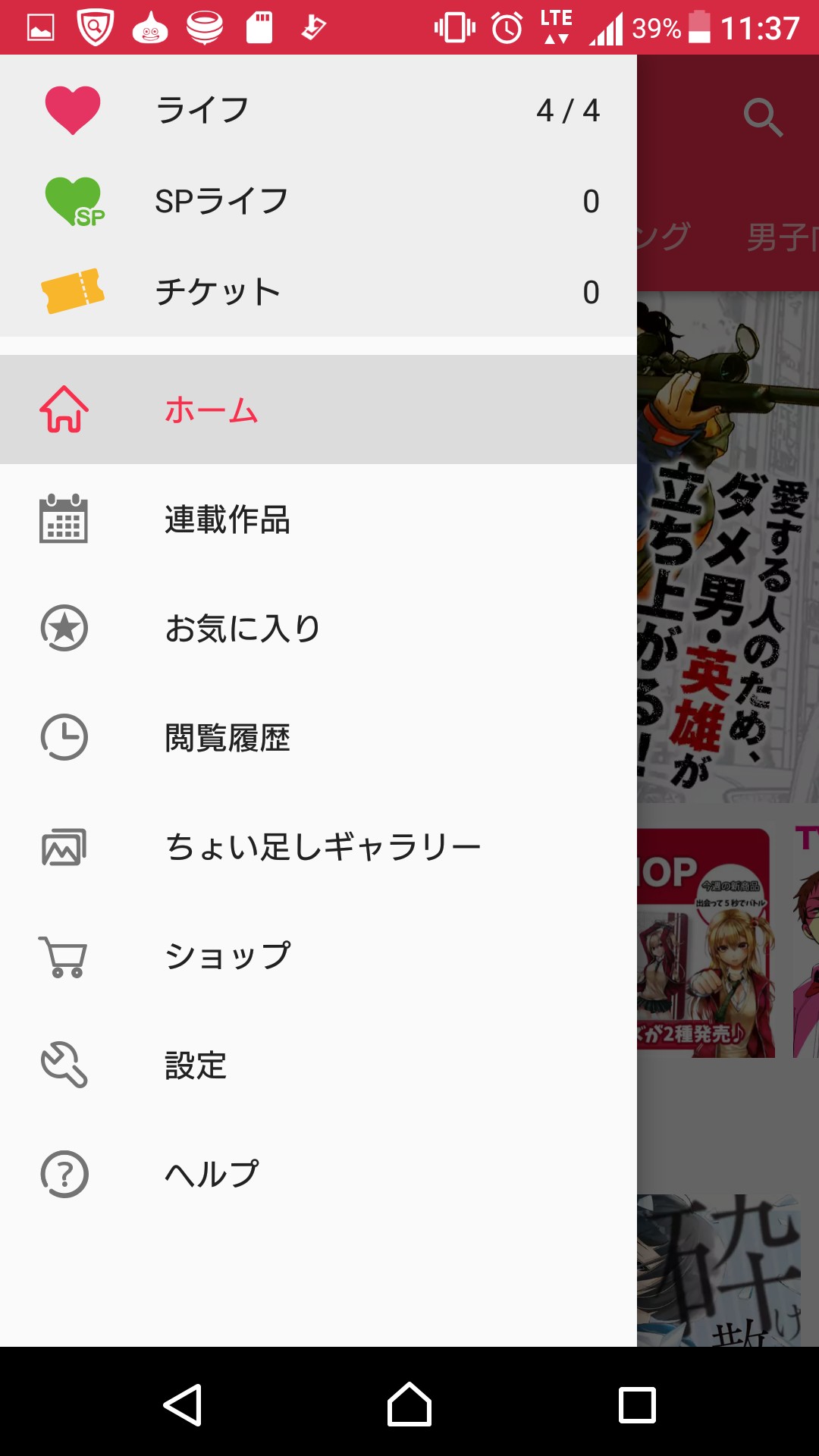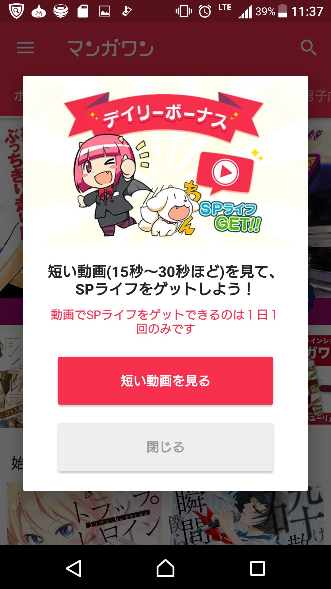ミッションをクリアすると追加でSPライフというものが貰えるので、もっとたくさんの漫画を読むことが可能になります。
