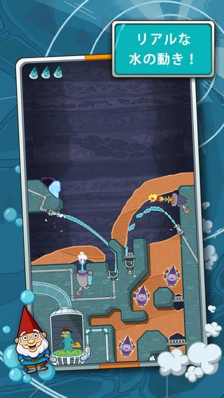 人気ディズニーアニメシリーズの一つ、「フィニアスとファーブ」に登場するカモノハシのエージェントペリーの救出を目的としたパズルゲームアプリ。今作では水を使ってペリーを助けることになります。