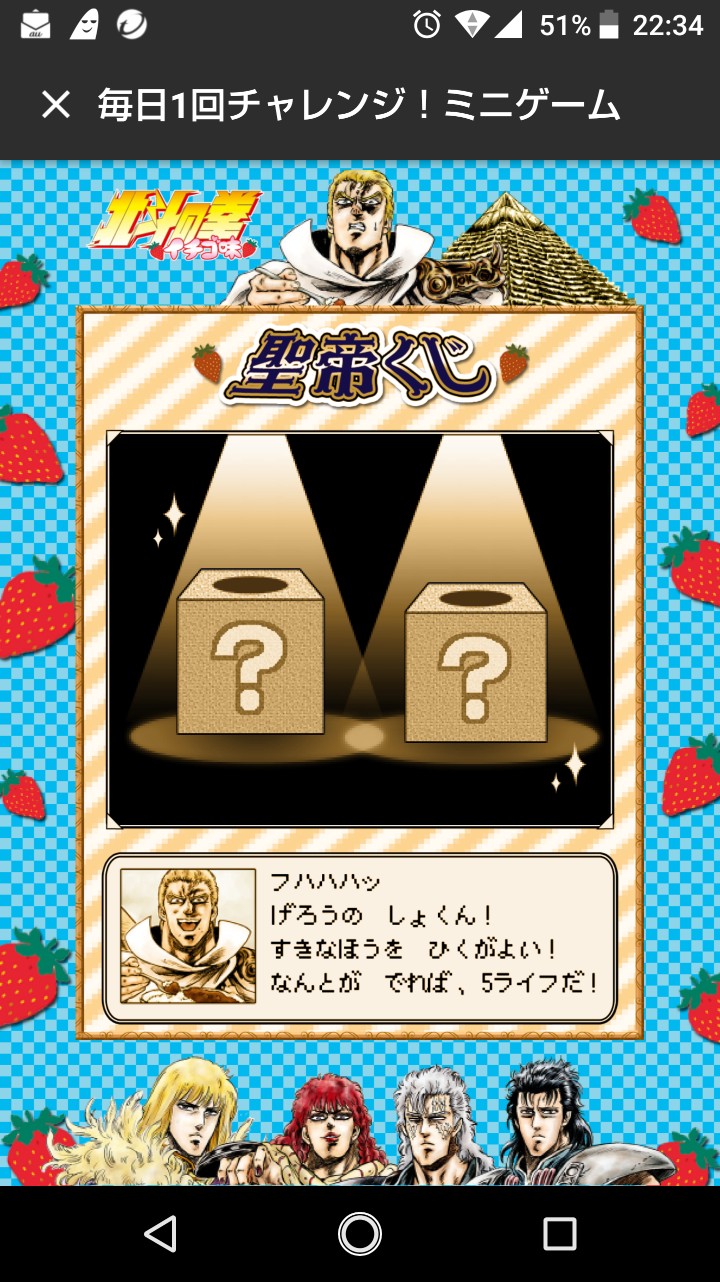 また、このアプリには「聖帝くじ」というものがあり、1日3回チャレンジできます。