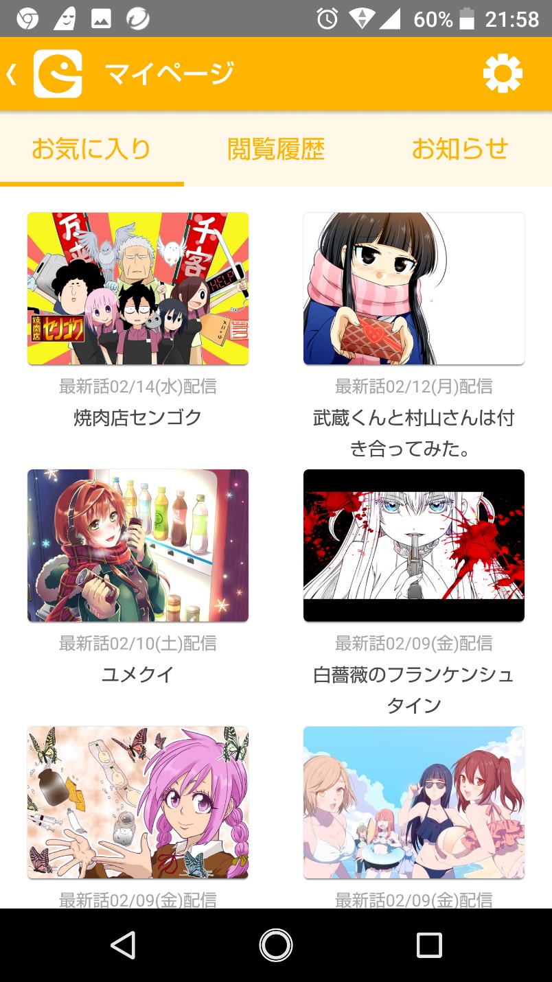 GANMA!オリジナル作品がほとんどを占めており、基本的に曜日ごとに更新する作品が決まっています。