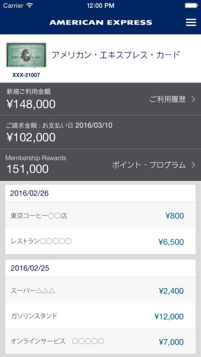 スマホで利用状況を確認する「Amex JP」