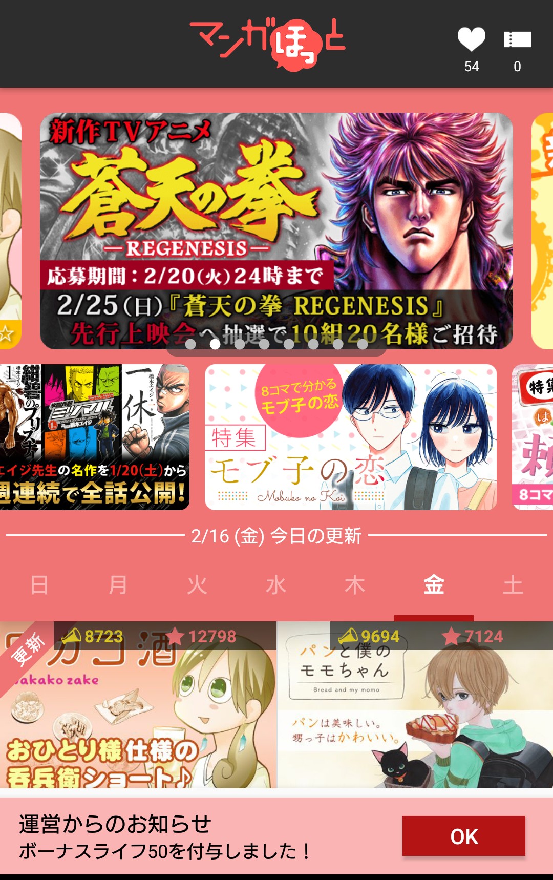 すでに完結している人気漫画から、オリジナル連載、コミックゼノンとの連携で提供される最新連載と、幅広い漫画を楽しめるのが「マンガほっと」です。