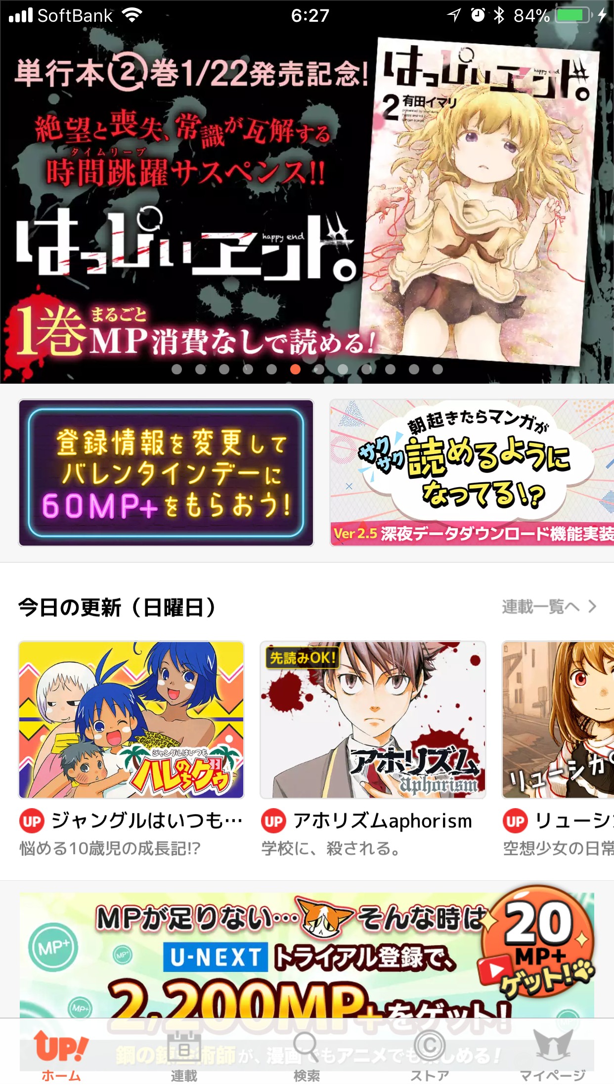 1日2回(8時、20時)に配布されるMP(マンガポイント)を使って漫画を読みます。