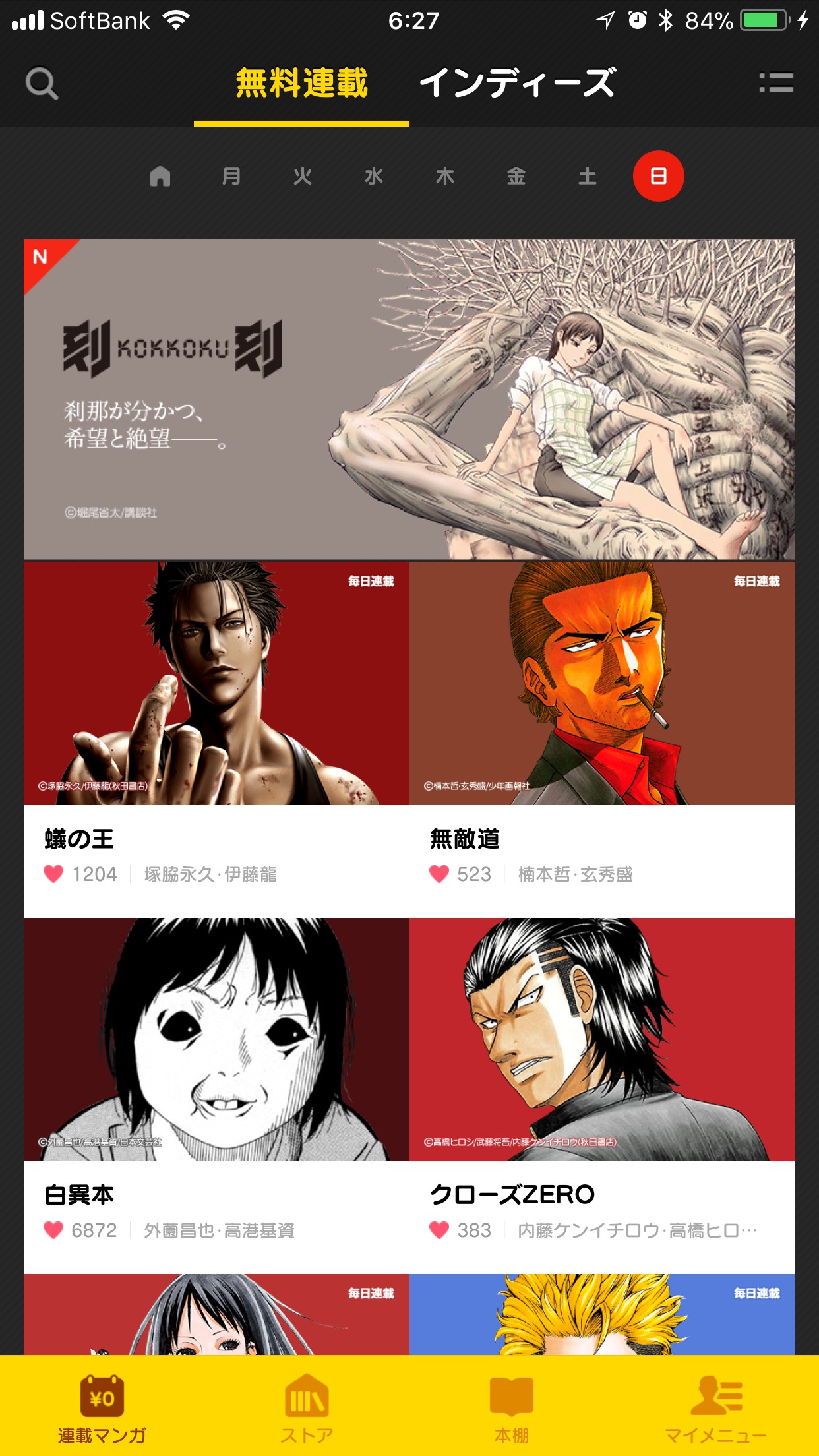 ジャンプやサンデーなどの週刊誌に連載している作品をはじめ、毎週200作品以上が公開されています。