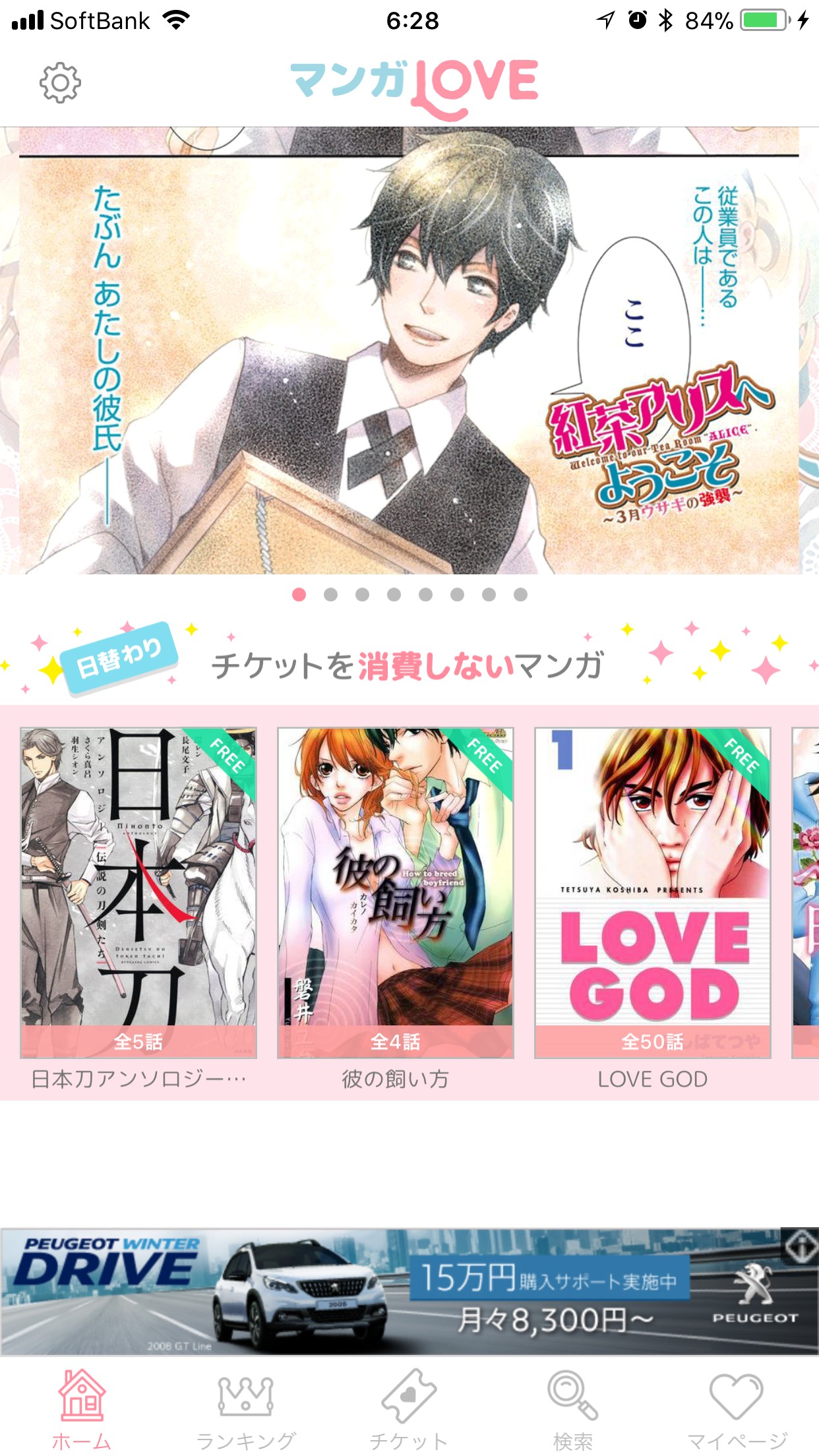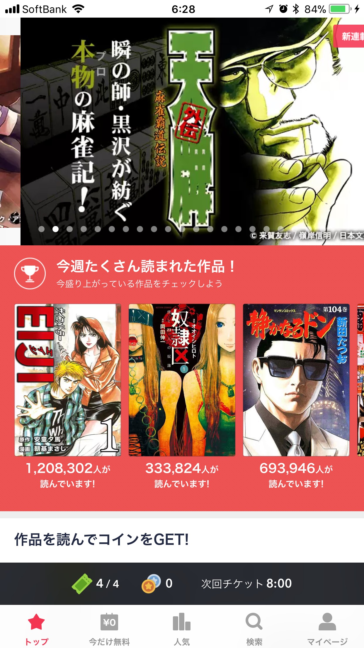 1日2回(8時、20時)に配布されるチケットを使って漫画を読みます。