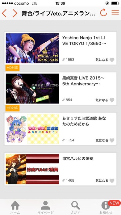 また、アニメだけでなく、アニソンミュージッククリップ、アニソンライブ映像、舞台、ミュージカルの作品も豊富です。