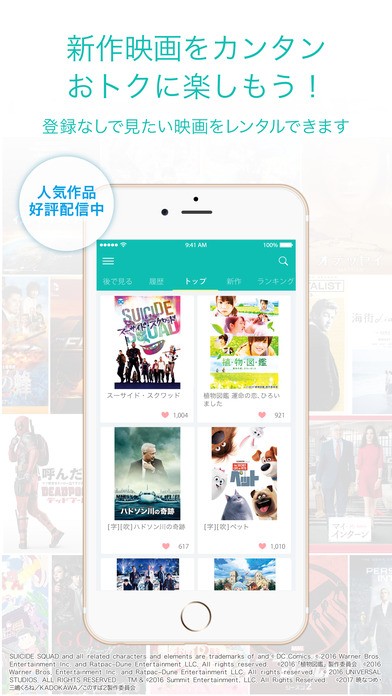 なんと、ダウンロードして初期設定を完了するだけで、新作映画1本分のポイント(540pt)が付与されます。