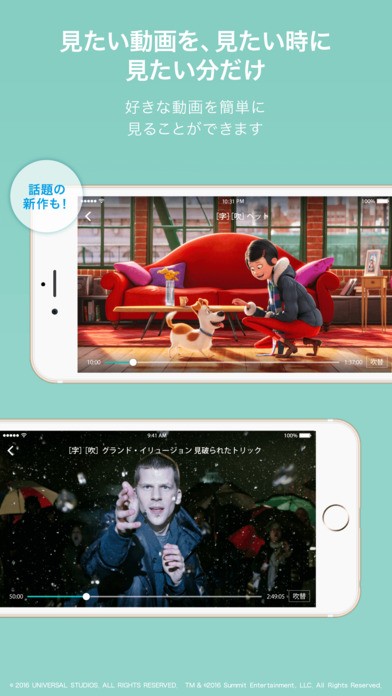 スマートフォンやタブレットで、好きなときに好きな場所で好きな作品を見ることのできる、動画アプリです。