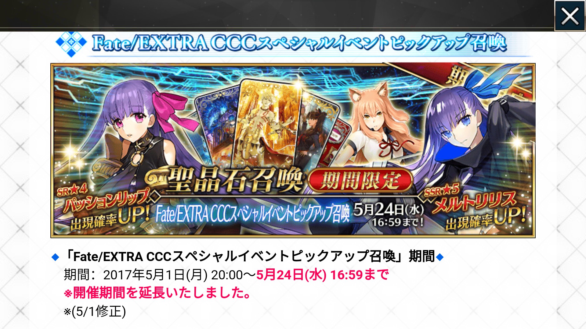 Fate/ExtraCCCスペシャルイベントピックアップ2召喚