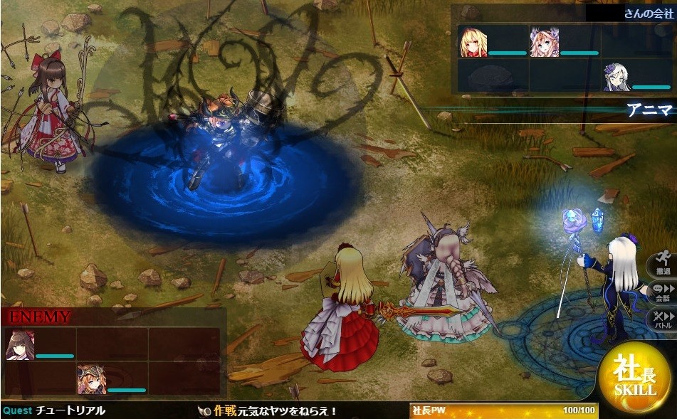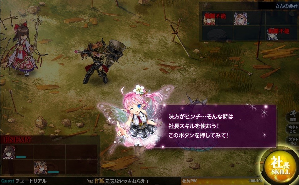 チュートリアルでは発動方法を教えてくれるので表示される指示に従って社長スキルを使ってみよう。