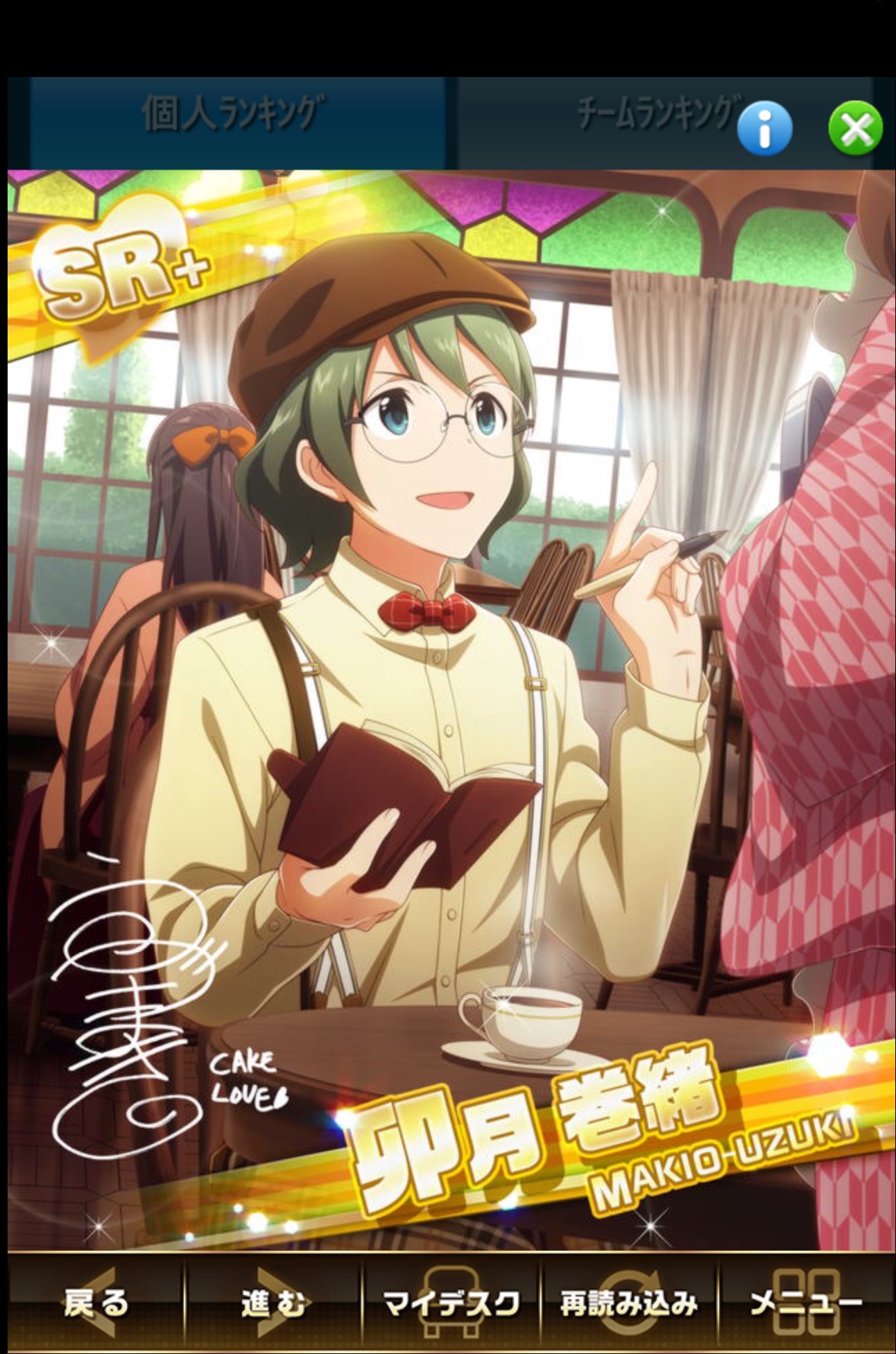 このイベントの上位報酬はSR「記した出会い」卯月巻緒。1位~1000位以内に入賞すると確定で入手できます。