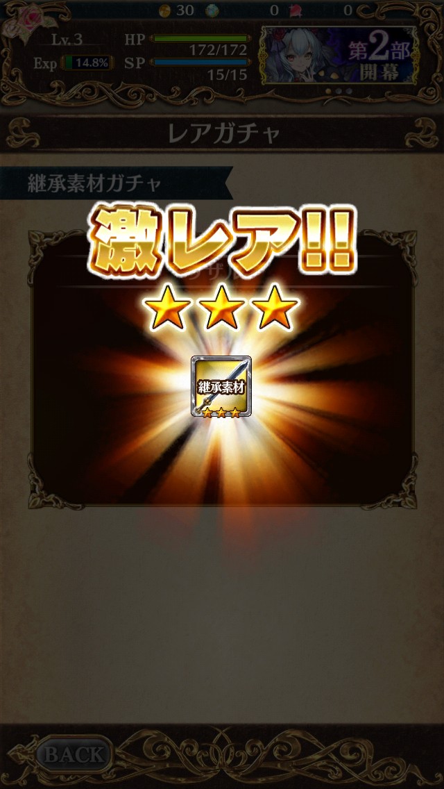 ゲーム開始後、チュートリアルを始めます。アバター変更後に1回目のガチャを引くことができ、姫に仕えるとプレゼントでもう1回引くことができます。