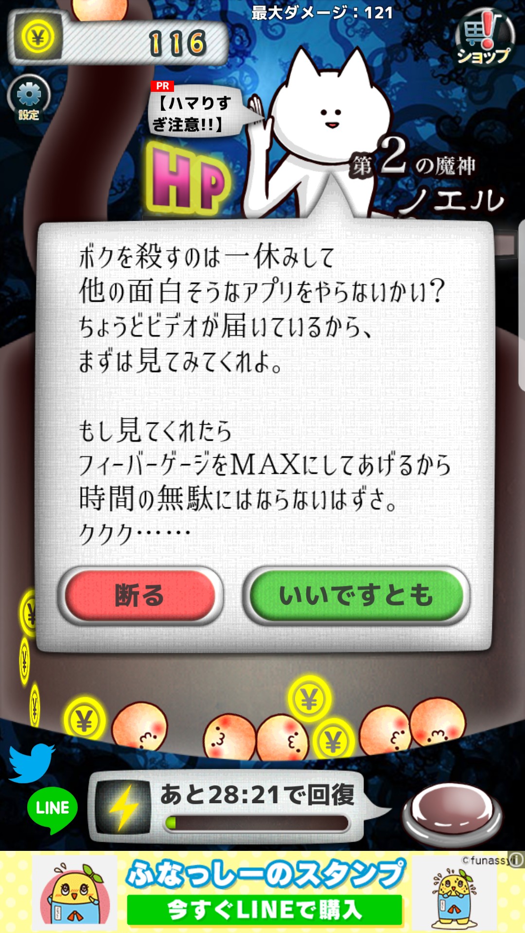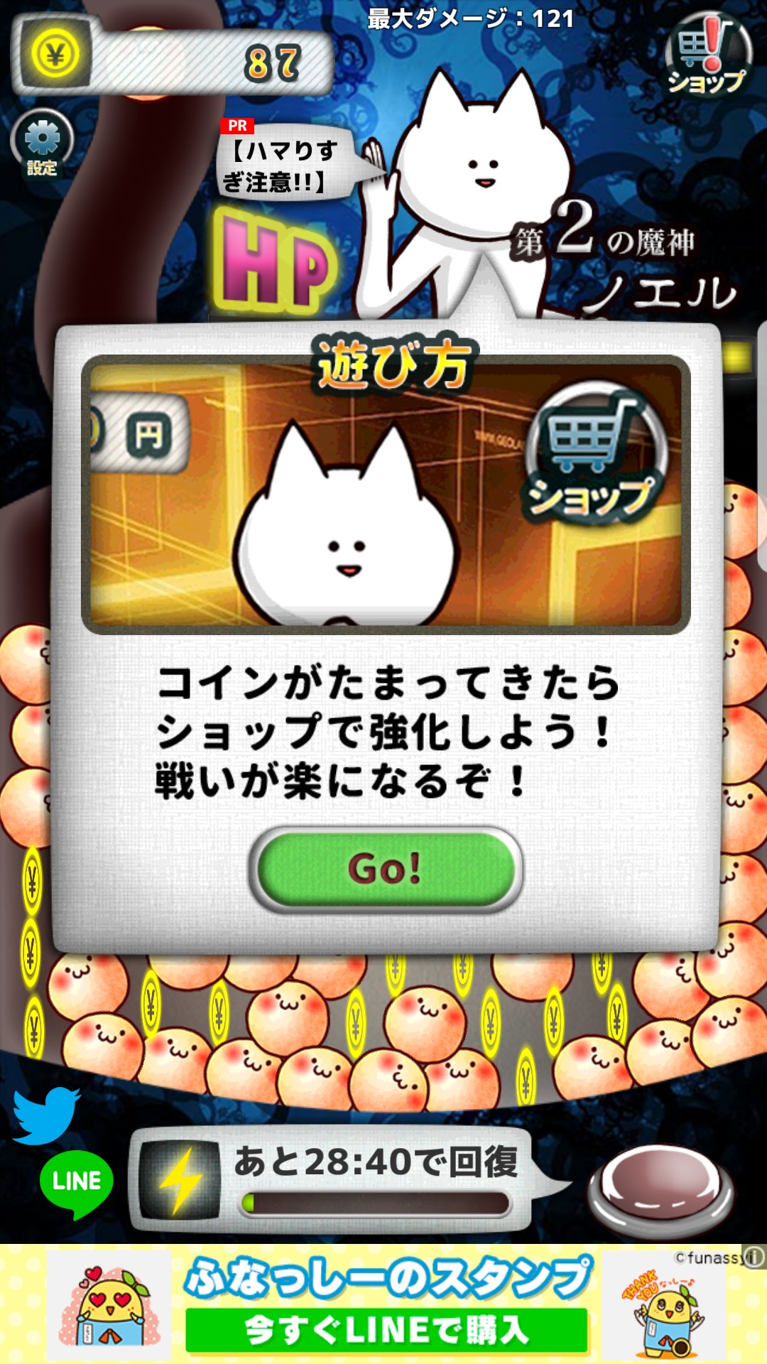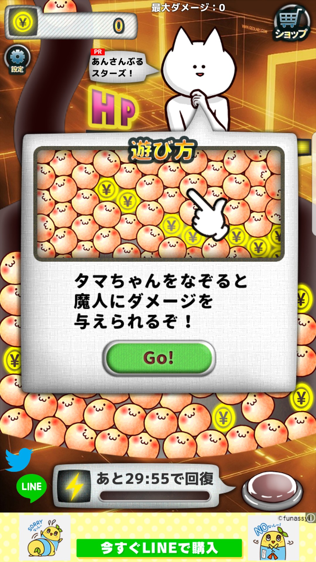 ゲーム中に溜まったコインはショップでダメージやフィーバー時間、コインの単価を増加、レベルアップさせるのに必要です。