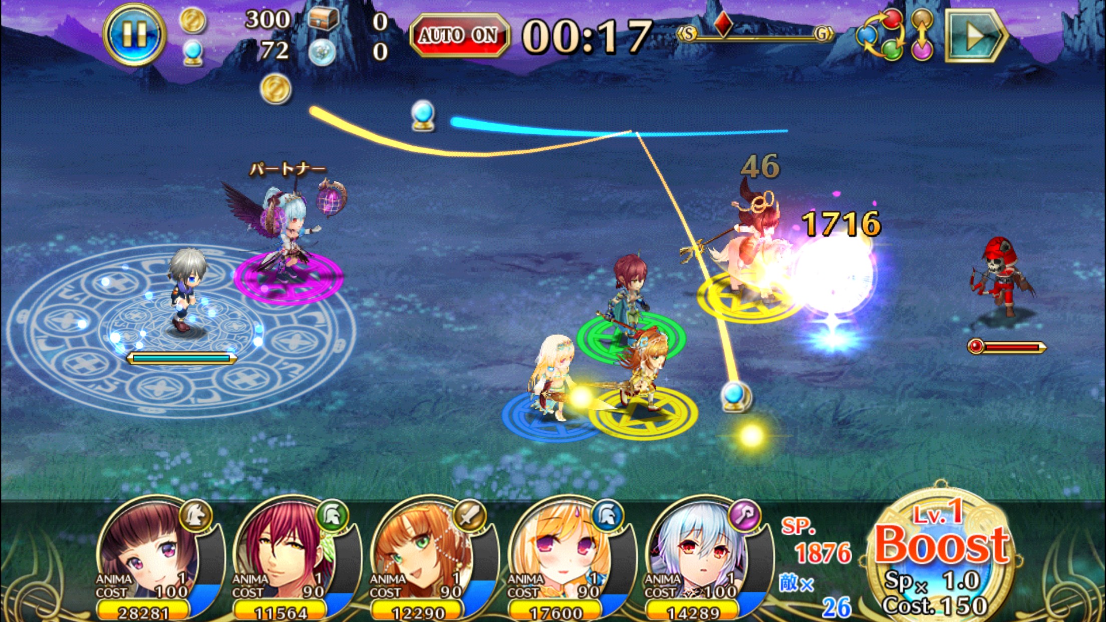 ボスなどの強敵には、全ユニットのスキルゲージを満タンにした後で、一気にスキル攻撃のコンボを行うと効果的でしょう。