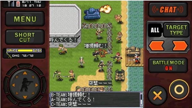 ドット絵2Dで展開するバトルは、シンプルだからこその白熱戦!定型文チャットを利用してユーザー間のコミュニケーションを図りながらの戦争は、ガラケー時代からの人気を継続。人数が多いほど盛り上がるバトルに、友人たちを誘い合ってプレイするしたくなる面白さです。