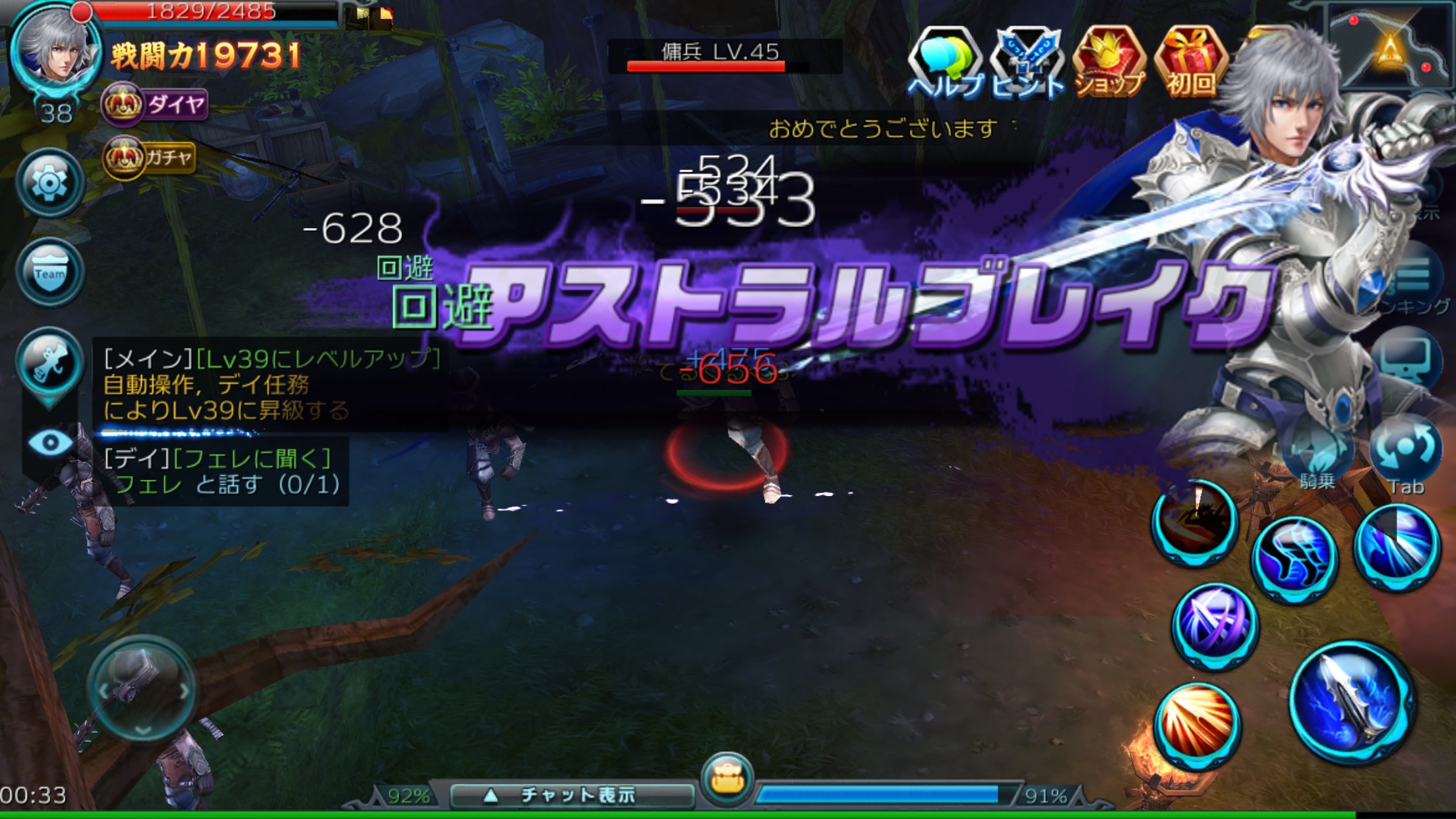 なお、「オーラ」はレベルが近い敵を倒したりクエストを達成することで貯めることができます。