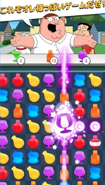 アメリカのアダルトアニメを元にした「ファミリーガイ:こんなパズルゲーム狂ってるぜ!」などは、王道のスリーマッチパズルをコミカルに楽しめるパズルゲームになっており、ステージ攻略でたまに入ってくるコミカルなストーリーも楽しめます。