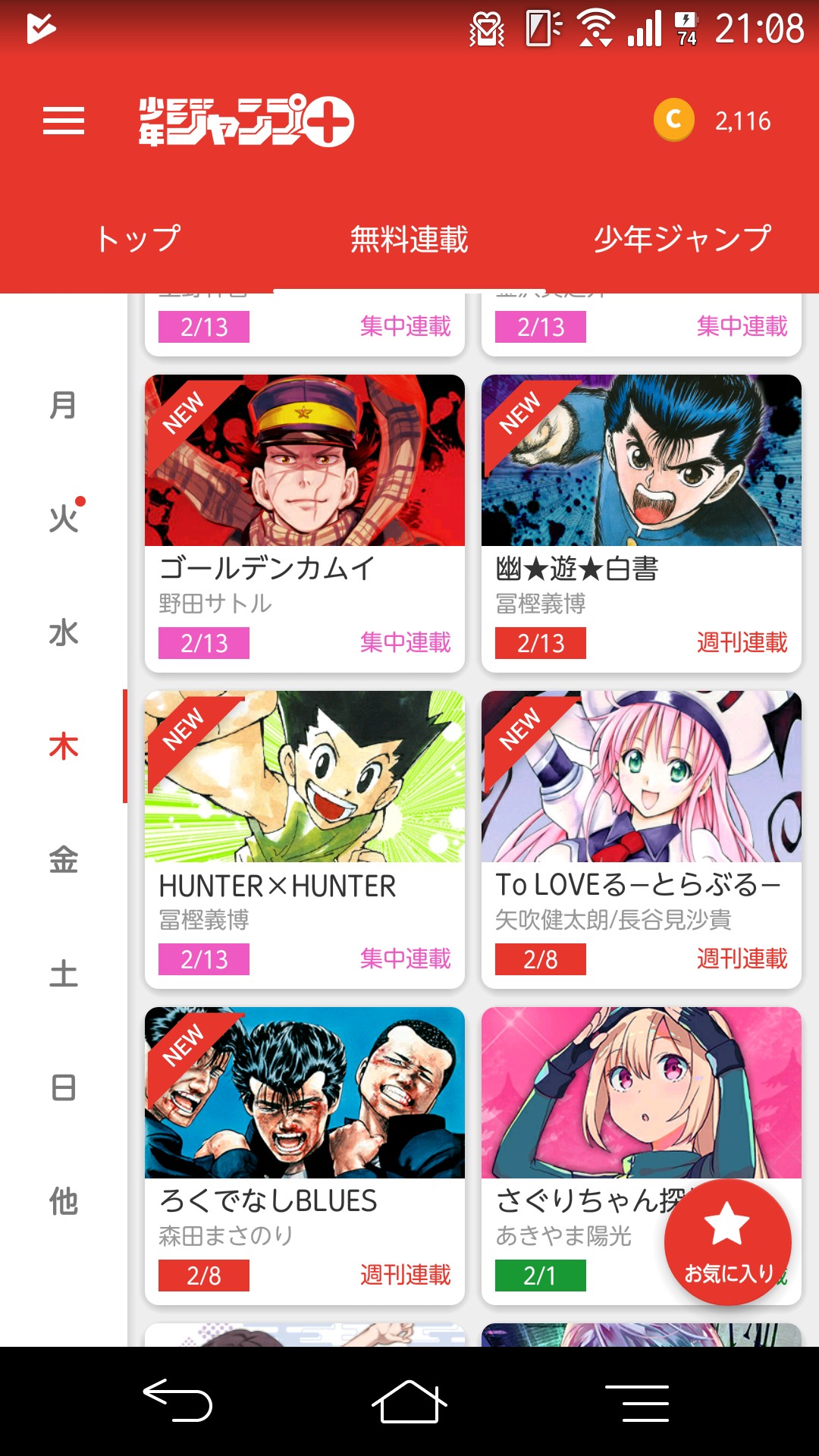次におすすめしたいアプリは、ジャンプに連載されている作品が読み放題のアプリ「少年ジャンプ+」です。「少年ジャンプ+」では、週刊少年ジャンプ、ヤングジャンプやスクエアジャンプなどいわゆるジャンプ系の雑誌に連載していた、もしくは現在連載中の作品を読むことができるアプリです。「マガジンポケット」同様に、過去にジャンプ系の雑誌に連載されていた名作漫画『ドラゴンボール』『幽☆遊☆白書』などが復刻連載されています。また、「少年ジャンプ+」では、現在連載中のイチオシ作品や過去の名作漫画を期間限定かつ話数限定ではありますが、毎日1話ずつ更新され、これらは期間中であれば無料で何度も読み直すことができます。更に、「少年ジャンプ+」ではコイン制度が設けられており、コインを貯めると過去の名作から現在連載されている作品まで多くの作品を無料で読むことができます。「マガジンポケット」同様オリジナル作品も連載され、多くのジャンルの作品が揃っています。