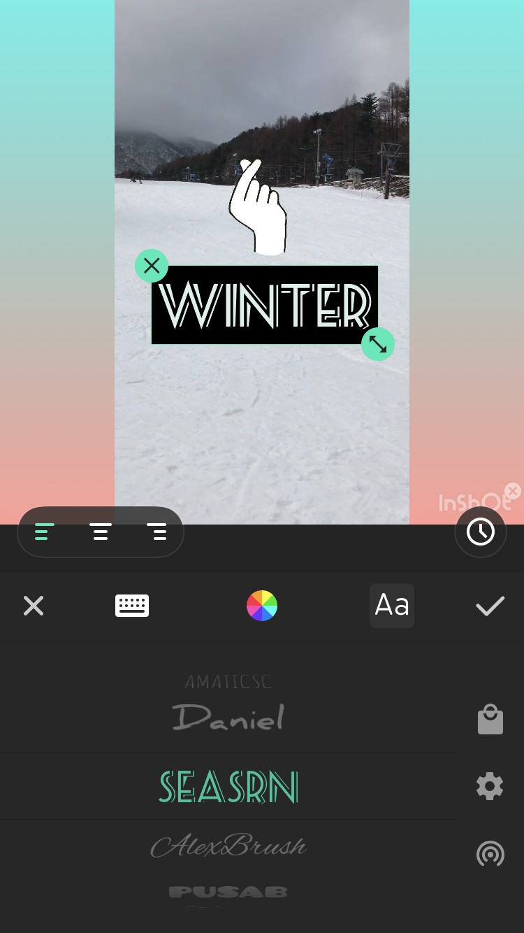 文字のサイズや色変更はもちろん、カーブに沿って文字を配置したり、文字の間隔を細かく変えることや自分でインストールしたフォントを追加することも可能なため、デザインされたロゴのようなテキストを自分で作り上げることもできます。デザインすることが好きで、こだわりを持って作り込みたいという方も満足できるアプリです。