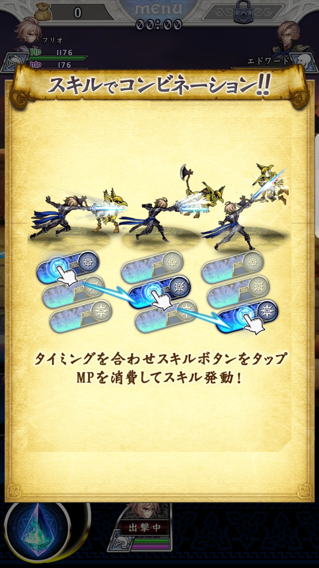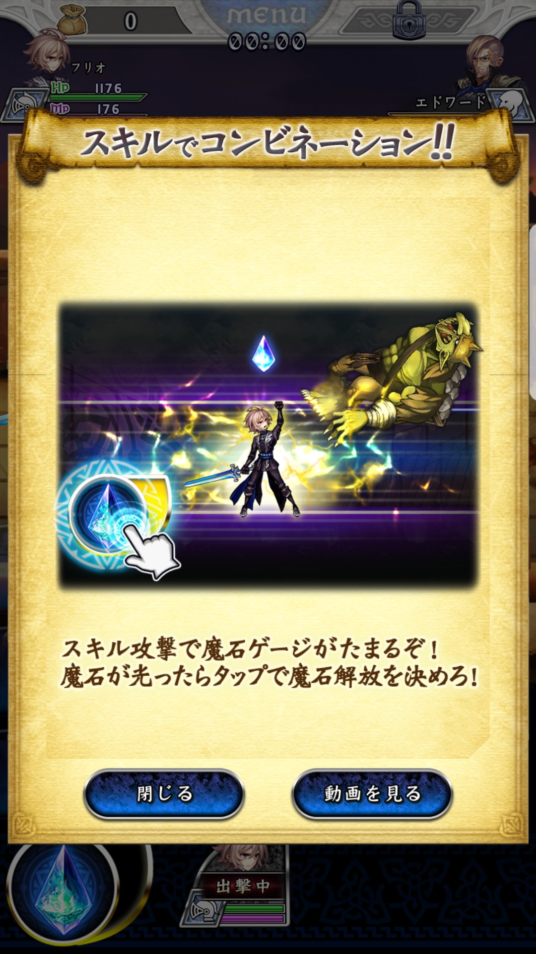 こちらもゲージがたまると魔石が光りますのでそちらをタップすることで使えます。