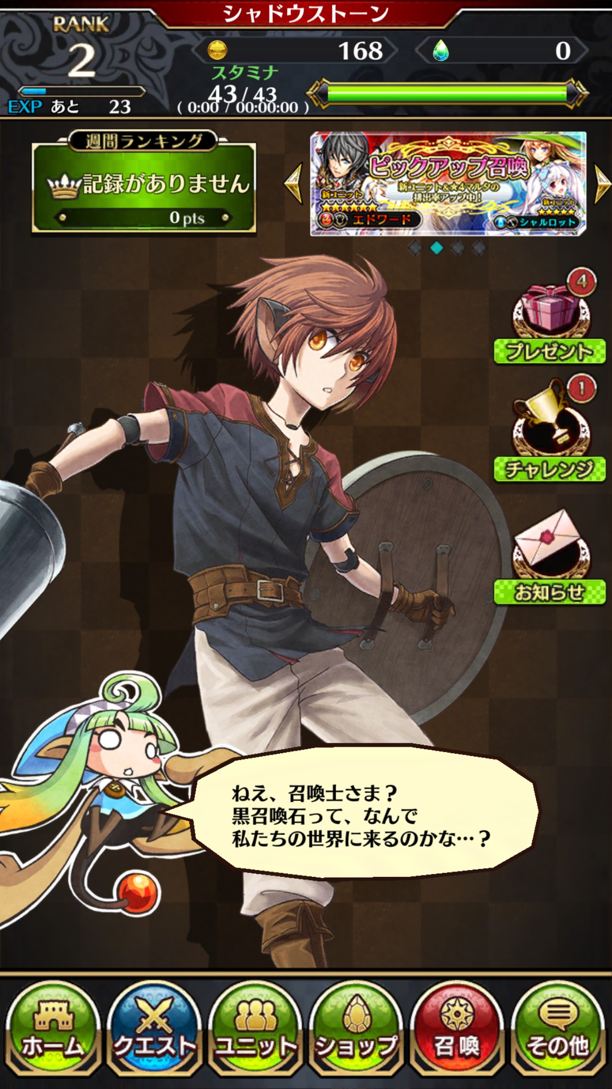 画面右下の「召喚」ボタンをタップすることで、ユニットの召喚(ガチャ)を行えます。