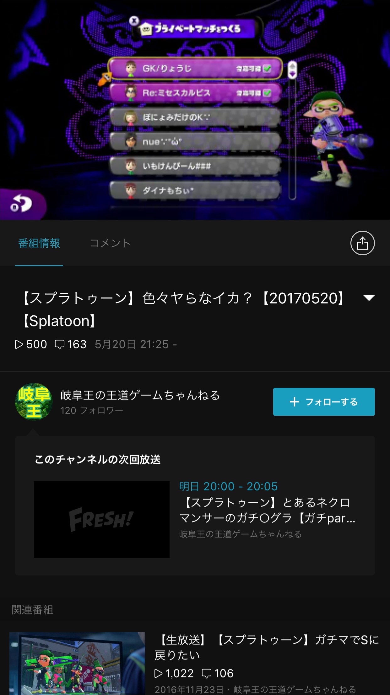 番組情報では、フォロー設定ボタンや関連番組情報が表示されています。