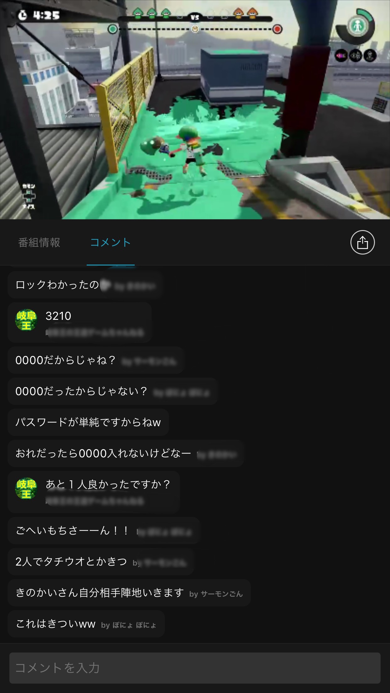 コメントでは、生放送で視聴している動画のコメントを発信したり、別ユーザのコメントを見たり、コミュニケーションをとることができます。