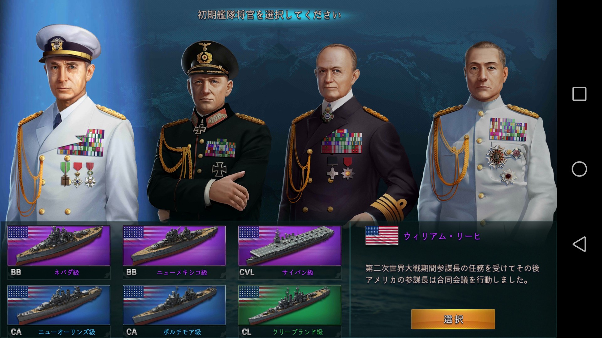 その中でも、特別強力な将官4人の資料が届いていますので、編成に加えたい将官を選択しましょう。