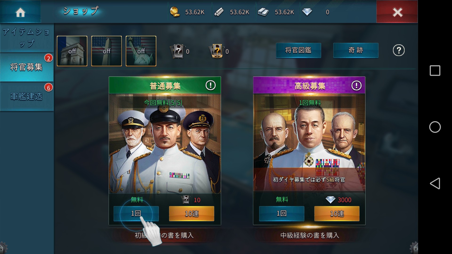 さらにその後、将官を募集するためのガチャも無料で引かせてもらうことができます。