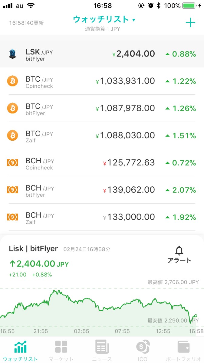 現在では、「bitFlyer」や「Zaif」などの主要な取引所をはじめとした、12か所と連携が可能です。取引所が提供する専用アプリでは、どうしても取扱通貨が限られてしまいますが、「コイン相場」では国内外問わず、幅広い通貨の取引をすることができます。「Lisk」以外にも、さまざまな通貨や取引所で取引をする人にとっては、使い勝手のいいアプリと言えるでしょう。