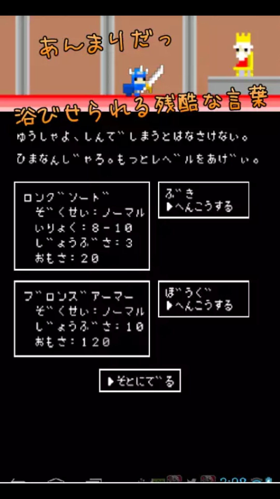 難しい設定やダンジョンは一切なく、単純に右へ右へと進んでいくrpgとなっています。