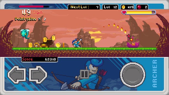 Slayinはビットサウンドとドットグラフィックが懐かしさを感じさせる、Androidで遊べる横スクロールのアクションRPG。昔のアーケードで遊んでいたころを思いだす作りです。