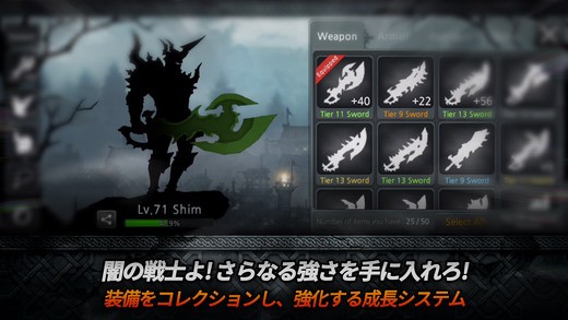 ただし難易度は若干厳しめでしっかり装備を強化しないと、早いうちに詰まってしまうでしょう。ハクスラライクな要素もあり、ステージをクリアすると装備を手に入れられます。Tierはランクを示しており、