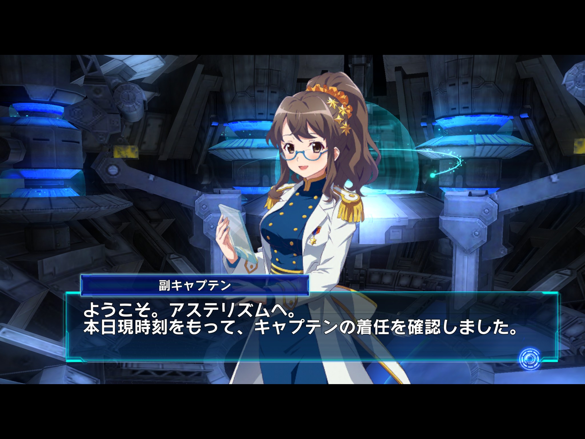 アプリを開始すると、プレイヤーは超重力航行艦「アステリズム」のキャプテンという設定となっています。着任したばかりのキャプテンなので、丁寧に副キャプテンを中心にチュートリアルをしてくれます。