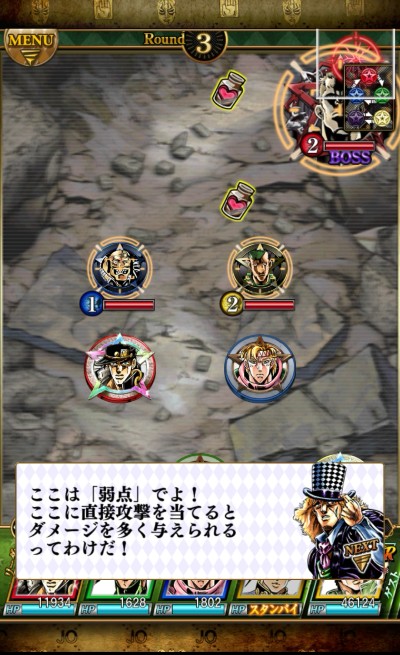 けれど、そんな静かな戦略バトルの中にも、「ジョジョの奇妙な冒険」ならではの必殺技が多彩に表現されており、静かながらも熱いバトルを楽しむことが出来ます。「ジョジョの奇妙な冒険」好きにはたまらないゲームアプリです!もちろん、「ジョジョの奇妙な冒険」を知らない人がプレイしても楽しめるゲームアプリです。このゲームアプリでは「ジョジョの奇妙な冒険」のキャラクターや世界観を分かりやすく説明されているので安心です!このゲームアプリを通して、「ジョジョの奇妙な冒険」を知ってもらえるきっかけとなれば、著者も嬉しいです!