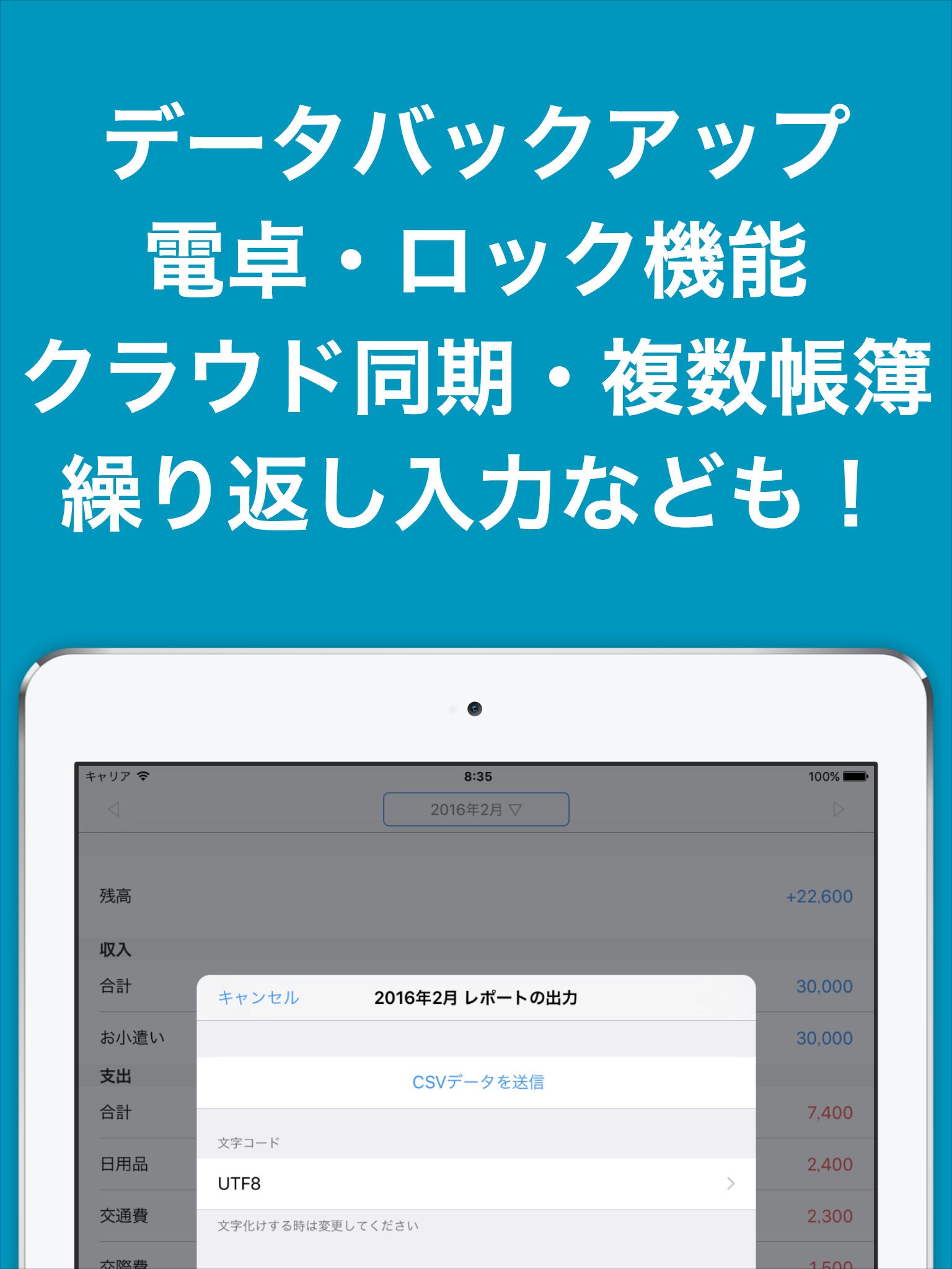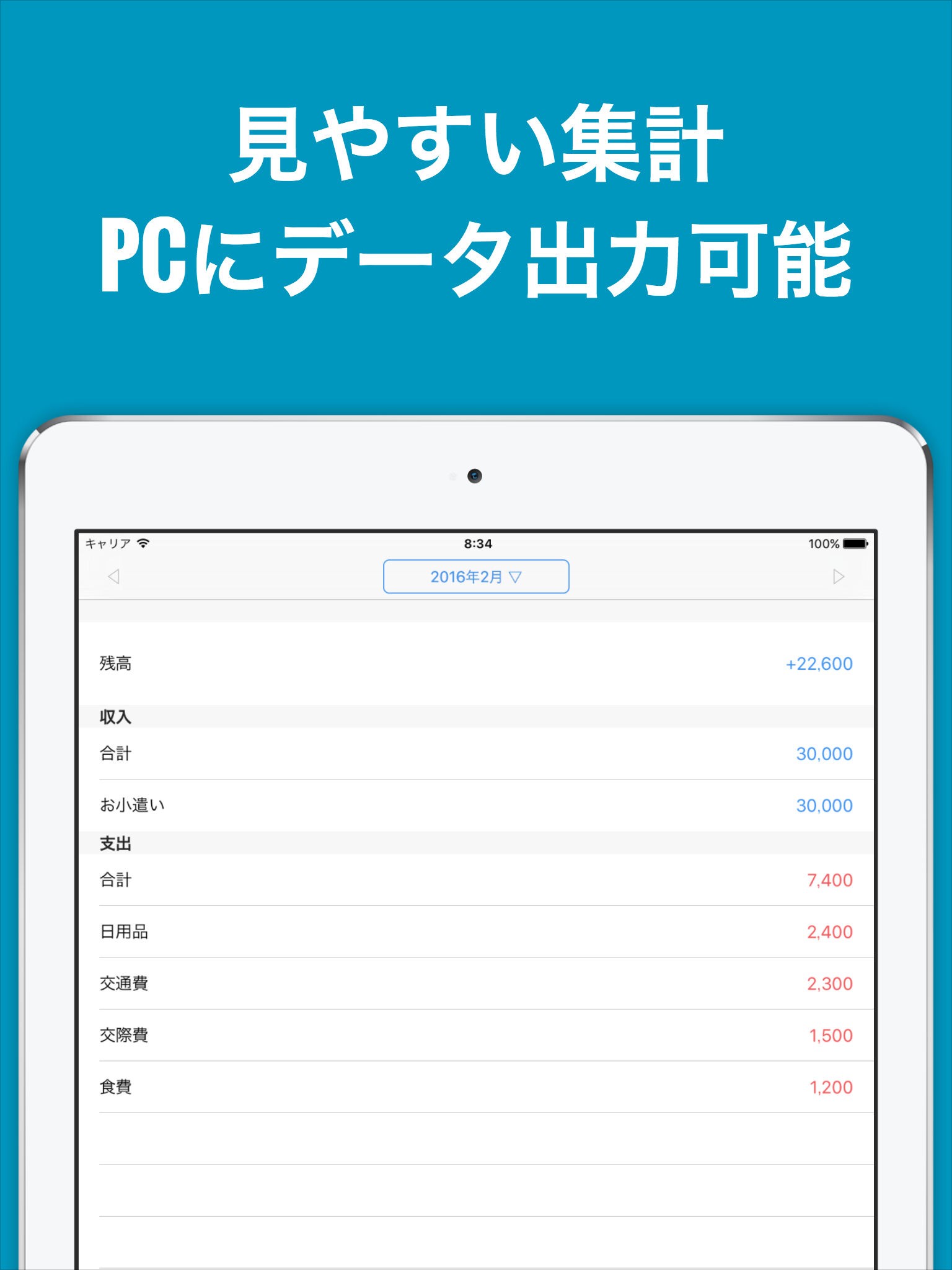 レシート撮影や金融機関との連携もなく、余計な機能は削っているのでサクサク家計簿を入力できます。