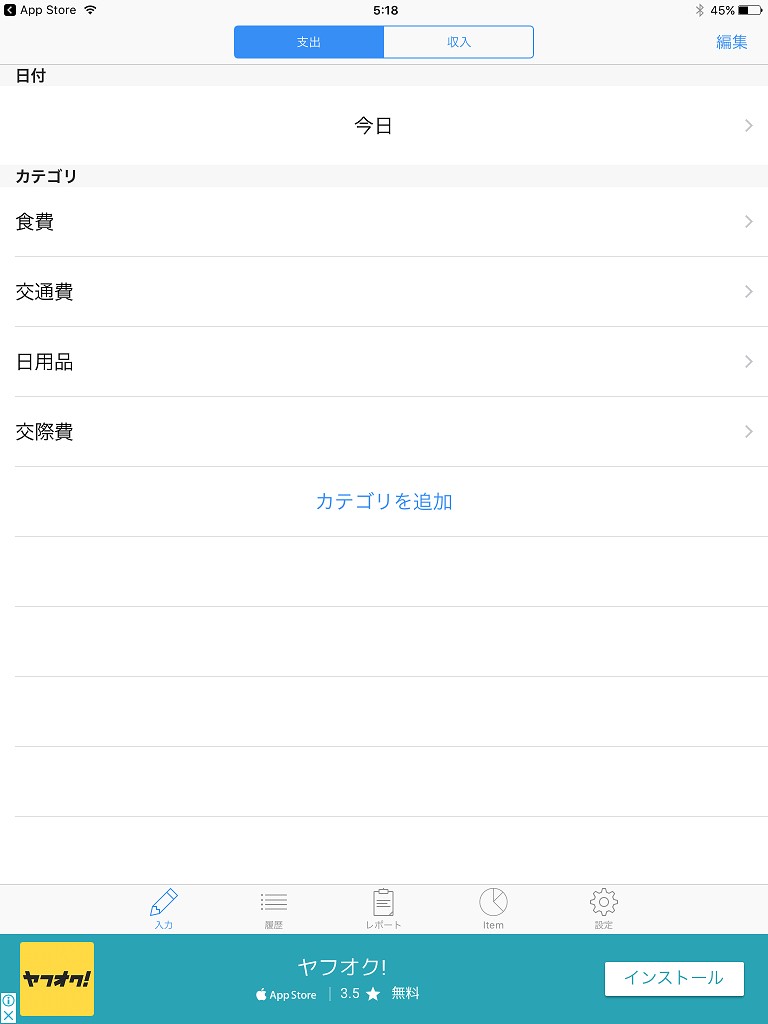 シンプルで基本的な機能のみのアプリですが、十分家計簿としての機能を果たしてくれます。