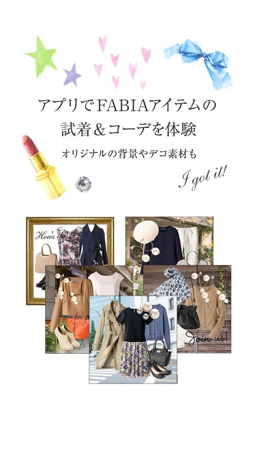 このアプリは、動画・ビデオを編集するだけではありません。【ショッピング機能】【洋服コーディネート&バーチャル試着機能】が付いています!FABIA(ファビア)の商品をアプリで購入する事ができます。最新のトレンドのファッションアイテムをチェックする事ができ、さらに気に入った商品は購入する事ができますので、売れ筋アイテムなどチェックし、お洒落にもなれちゃうのが魅力なアプリ!さらに、バーチャル試着機能で気になる洋服から、靴、バックをバーチャル試着&コーディネートする事が可能なんです。通販でありがちな、買ってみていざ着てみたらなんか違う。。。なんて失敗はなくなります!お洒落なコーディネートも作ることができるので、是非、アプリを利用する際には、こちらの機能もチェックしてみてください!