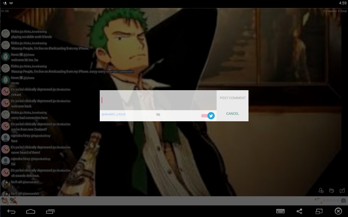 ツイキャスでは自身のアカウントにログインすると、各配信動画に対してコメントを残すことができます。「ツイキャス・ビュワー」ではコメントも簡単にできるようになっていて、動画視聴中にコメントしたくなったときは、ワンタップでコメントすることができるようになっています。そのためリアルタイムでのコメントにも強く、配信動画を視聴者みんなで共有して楽しむことができるでしょう。