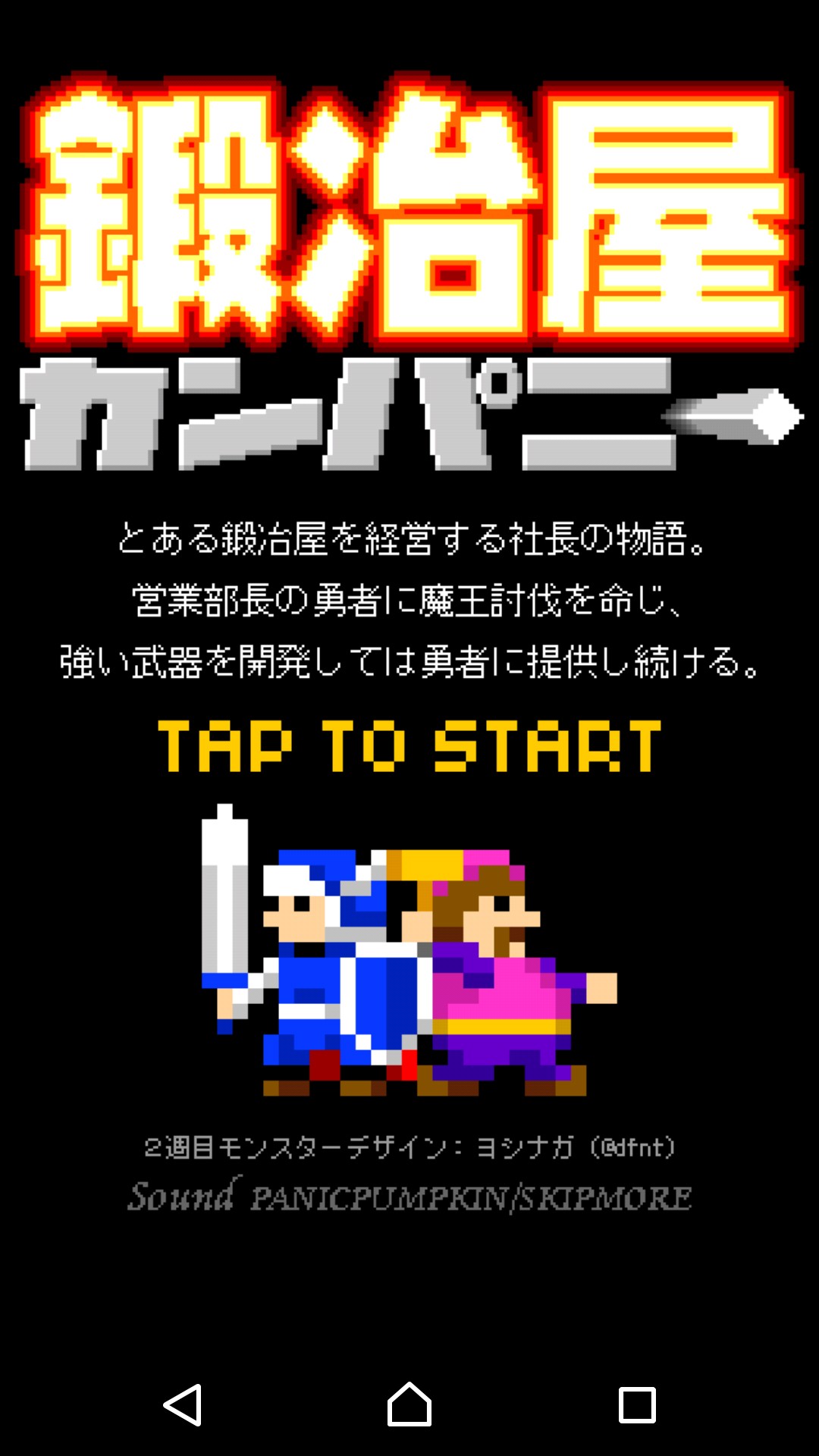 雇用に給与支払い、設備の投資などを行って、熱せられた剣をタップでカンカンと鍛えて、魔王の討伐へと向かわせた営業部の勇者たちに届ける面白いRPG風ゲームアプリです。